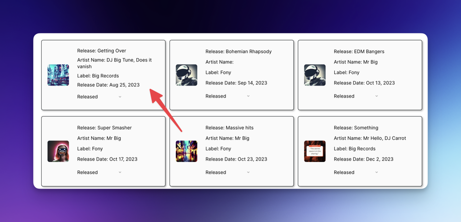 When you initially created the release, you inputted the artist. This artist will be associated with the release. You can change the artist or add another by clicking a tag.